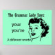 Grammar Lady says: your and you're are two different words! Grammar Lady wants you to remember that your is a possessive belonging to you and you're is a contraction of you are. Simple single colour design with text and face.