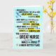 Thank your nurse with this modern typography style design featuring the message, "A good nurse is knowledgeable, skilled, and able. A GREAT NURSE, however, is something MORE. A GREAT NURSE looks beyond just the physical needs to the MENTAL, EMOTIONAL, SPIRITUAL. A GREAT NURSE eases the suffering of the patient with BRAVERY, KINDNESS, and COMPASSION. You are a definitely a great nurse, the kind that makes this world a much better place. Inside can be customised to fit your personal needs." Inside has this message but can be customised to fit your personal needs. GREAT NURSES like you deserve recognition. Your compassion, dedication, bravery and ongoing commitment to excellence are appreciated and valued and so are you. THANK YOU!