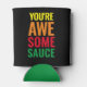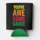 With the compliment, "You're Awesomesauce", styled in a tall block font with four bold hot pepper colours on a solid black background, this can cooler is the perfect favour to hand out on World Compliment Day (March 1) -- or any day that you feel like making someone's day, at a party, or even at the office! Reverse shows identical design.