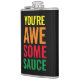 With the compliment, "You're Awesomesauce", styled in a tall block font with four bold hot pepper colours on a solid black background, this flask is the perfect way to celebrate someone special with on World Compliment Day (March 1) -- or any day that you feel like making someone's day, at a party, or even at the office!