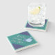 The coasters are gorgeous, a quality feel and heavy weight. They look like a precious archeological find. A rustic stone juxtaposed with a modern floral black and white print. I like the way the print goes slightly imperfect on the cut stone edges giving them a kind-of natural beauty.