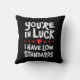 A cunning pick-up line or a gently insulting put down - it's up to you! You're in luck I have low standards is a sarcastic dating quote that can have a whole range of different meanings.