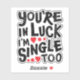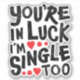 Need a simple pick-up line? You're in luck - I'm single too says everything it needs to. Get yourself noticed with this witty flirting slogan.