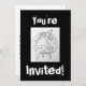 Customise these black and white You're Invited Happy Halloween Sick Jack O'Lantern invitations to say who, what, when, where and why for your upcoming Halloween celebration, party or event. Drawing and design by Krista Peacock.