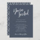You're invited modern script wedding invitation. Modern wedding announcement with geometric backer. Colours can be changed to suit your colour scheme. Petrol blue.