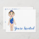 Postcard invitation design features an original marker illustration of a synchronised swimmer. Ideal for your favourite synchronised swimmer or coach. Just personalise with your event information.