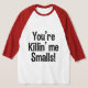 I bought the Men's Basic 3/4 Sleeve Raglan T-Shirt, White/Navy. It arrived on time for a gift and is of a great quality and fits perfectly! So cute! Zazzle has done it again! The printing was clear and filled in solidly.