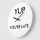 Purchased this online and it got delivered quickly. It was a present for my Dads 70th birthday. He loves clocks so decided to get him one with something written on it. Battery went in and it started working straight away. Dads had no issues with it. Printing was just how it came up online.