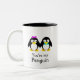Two cute black and white penguins holding wings. The girl has a pink bow on her head while the boy has a blue bow tie. Below is a template in black text reading You're My Penguin. You can leave this text as it is or change to your own.