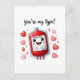 Share a smile and a sweet sentiment with this charming card featuring a cute blood bag character surrounded by hearts and the playful message "You're My Type!" Perfect for sending a unique and heartwarming note to someone special. This adorable card is a delightful way to express your affection and appreciation.