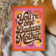 Designed with bold, colourful details and groovy retro fonts, this postcard delivers a fun, empowering message with vintage flair. Playful yet powerful, it’s perfect for moms who rock their role with attitude, humour, and serious style.