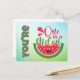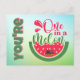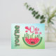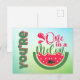 Brighten someone’s day with this playful “You're One in a Melon” postcard featuring a laid-back dog lounging on a float with sunglasses inside a juicy watermelon pool. Bursting with charm and colour, this lighthearted design is a fun way to send encouragement, friendship, or a cheerful reminder that someone truly is one of a kind.
