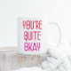 You're Quite Okay Funny Romantic Valentine Love Tea Coffee Mug features the text "You're quite okay" in modern red and pink script typography. Perfect gift for Valentine's Day, birthday, Christmas, anniversary, Mother's Day and more. Designed by © Evco Holidays www.zazzle.com/store/evcoholidays
