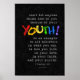 "Don't let anyone think less of you because of your YOUTH! Be an example to all believers in what you say, in how you live, in your love, in your faith, and your purity." --Scripture: 1 Timothy 4:12, a powerful Bible verse for young people as well as all Christian Believers. --Design: Colourful YOUTH and white text against black background