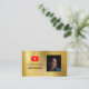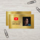 YOUTUBE Channel Advertisement QR Code Scan GOLD Photo Professional Business Card. This is a versatile design for anyone who has YouTube business, such as professional, consultant, social media influencer, networking website designer, interior designer, florist, wedding planner, marketing specialist, social media, entrepreneur, small business, clothing, fashion designer, cook, bakery and more. All the texts are pre-arranged for you to personalise easily and quickly with your own details. For any changes, please message us via Zazzle chat prior to order purchase.