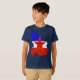 100% cotton so perfect for summer, It is a nicely designed t-shirt, the fabric is soft and the seams finished well, the body of the t shirt has no side seams. I bought a medium size for my two grandsons, aged 9 and 8 it will be slightly big on them but I would rather that than too small