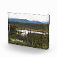 A view of the Yukon taiga. Customisable text reading, "The Yukon" also appears. The taiga, or boreal forest, covers vast parts of the high-latitude north from Northern Europe through European Russia and Siberia, to Alaska and Canada, between the steppes to the south and the treeless tundra farther to the north. The taiga is chraacterised by all but endless conifer forest, the swampy land dotted with lakes and ponds. Black Spruce, Picea mariana, are very common and takes on a columnar form when growing in wet terrain as in this view from near Beaver Creek, Yukon Territory. During the summer mosquitoes can be unbelievably numerous.