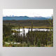 A view of the Yukon taiga. Customisable text reading, "The Yukon" also appears. The taiga, or boreal forest, covers vast parts of the high-latitude north from Northern Europe through European Russia and Siberia, to Alaska and Canada, between the steppes to the south and the treeless tundra farther to the north. The taiga is chraacterised by all but endless conifer forest, the swampy land dotted with lakes and ponds. Black Spruce, Picea mariana, are very common and takes on a columnar form when growing in wet terrain as in this view from near Beaver Creek, Yukon Territory. During the summer mosquitoes can be unbelievably numerous.