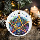 Yule Tree Winter Solstice Holly Wicca Pentacle Ceramic Ornament