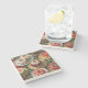 The coasters are gorgeous, a quality feel and heavy weight. They look like a precious archeological find. A rustic stone juxtaposed with a modern floral black and white print. I like the way the print goes slightly imperfect on the cut stone edges giving them a kind-of natural beauty.
