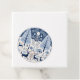 A beautiful illustration of a woodland scene with deer, trees, and animals in a blue colour palette, Scandinavian-inspired artwork, detailed foliage patterns, traditional Nordic motifs, and a rustic wooden house visible in the background. A decorative border forms around all the elements. The design includes features such as deer antlers, wildflowers, leaves, fireflies, stars, and animal footprints. A beautiful design for all your Christmas festivities!