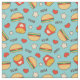 Adorable blue fabric with cheeseburgers, fries, hearts, and stars. Yum!