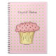 "This yummy little cup cake note book is just the right size for note taking at work or school. Image features polka dots on a pink background and a yummy pink cup cake with sprinkles. Customise this gem by adding your own text."
