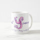 Hand drawn letter Y custom name meaning mug. Pretty heart and flower capital initial monogram doodled Y typographic design featuring hearts and flowers and the words Yvonne, Yew. Strong, versatile and vibrant in pink and purple hues. © Unique art and design by Sarah Trett. www.sarahtrett.com for www.mylittleeden.com on zazzle