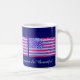 American Flag Red White And Blue America So Beautiful Personalised Custom Coffee Mug. Click the CUSTOMIZE THIS button to change the background colour and/or personalise this with your name, initials or fun message. The fanciful abstract lines of this USA flag art give the Star Spangled Banner an almost distressed twist. The red and white stripes of Old Glory represent the 13 original colonies while the 50 stars represent the number of states. The colours of the flag have meaning as well. Red symbolises hardiness and valour, white symbolises purity and innocence and blue represents vigilance, perseverance and justice. Be it Fourth of July, Independence Day, Memorial Day, Veteran's Day or Flag day... display this Americana style Stars and Stripes and let freedom ring.