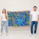 Blue And Yellow Astrum Vita Abstract Art Colourful Custom Throw Blanket. Can be customised to change the background colour and/or personalise this with your name, initials or a fun message. Astrum Vita is Latin for Star Life. The original design came about as a right brain experiment when I was having a creative block. Pen in my left hand, doodles upon swirls upon squiggles, until the shape emerged organically. Is it an amoeba, a starfish? Are those tentacles or seaweed waving about? Is there a hidden meaning in the pattern? Whatever it is, I decided Astrum Vita is definitely not from this world. Abstract art design in blues, yellows and purple.