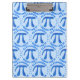 A pattern of round logo like Pi symbols are encircled by your name at the top and "geeks like pi" on the bottom for a one of a kind clipboard. From a small business to the home office or for back to school, this fun light and dark blue Pi symbol pattern clipboard will keep your papers tidy and organised with a touch of math geek humour.