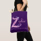 Pretty Z monogram art name bag in shades of pink and purple. Personalise with your own name beginning with Z, and name meaning for a truly personalised bag, this example is for the name Zadie Princess. Compassionate, independent & fortunate. © Unique Z monogram hearts and flowers drawing description and graphic art design by Sarah Trett. www.sarahtrett.com for www.mylittleeden.com