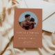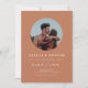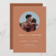 This wedding invitation features a sans serif font duo, modern minimalist design, and round personalised photo with a modern bohemian terracotta burnt orange colour combination. This wedding invite is perfect for your favourite modern minimalist couple. Easily edit the photo and add your wedding website (and/or QR code onto the backside).
