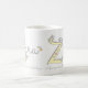 Decorated hand drawn letter with your own name beginning with Z and name meaning mug. Pretty heart and flower capital Z doodled typographic design featuring hearts and flowers and the words Zara A flower princess. Bright as a radiant dawn in grey, pink, purple and yellow. © Unique art and design by Sarah Trett. www.sarahtrett.com for www.mylittleeden.com on zazzle
