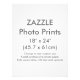 Zazzle Custom 18" x 24" Photo Print Template. Portrait 45.7cm x 61cm. Makes a great personalised birthday, anniversary or Christmas gift, with various additional frame options. Upload your own photo and fully personalise with text (dozens of font style options) and your own image, pattern, motif, or design. MEDIA: Kodak Professional Photo Paper (Satin). Developed specifically for darkroom printing, Kodak photographic paper is a premium silver-halide paper designed to dramatically enhance colours, while maintaining consistent tonal reproduction.
