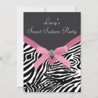 Zebra Print & Pink Birthday Party Invite