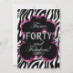 © 2011 Socialite Designs. Celebrate your 40th birthday with this elegant zebra pattern, elegant pink shimmer border and bling forty text invitation. a custom design by Socialite Designs.