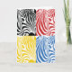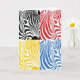 Zebra art in 4 distinctive colours: black, yellow, blue and red. Zebra art can be customised and re-scaled if necessary. Room for text on the inside of the card.