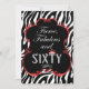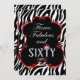 © 2013 Socialite Designs. Celebrate your 60th birthday with this sassy and chic zebra pattern, red shimmer border and bling 60 text invitation. A custom design by Socialite Designs.