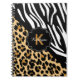 Custom monogram zebra and leopard print pattern spiral notebook.  Perfect for a journal, taking notes, work, school and home. Makes a great gift for all occasions.  Click the "Customise it!" button to change the text size, text colour, font style and more!