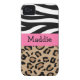 Zebra and Leopard Print Personalised with Name Case-Mate iPhone Case