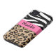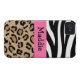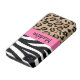 Personalised zebra and leopard print Case-Mate Barely There™ iPhone 4 Case. Personalise the pink band with your name or any text!