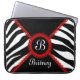 © 2011 Socialite Designs. Protect your laptop with this chic zebra pattern and lace, monogram design laptop sleeve. Makes a wonderful gift for that someone special.