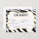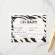 Pass out these cards at your baby shower for a fun game that you get to cherish forever! Featuring a black and white zebra striped print background and yellow accents.