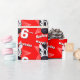 Birthday wrapping paper in bright red with a zebras face design. Personalise this zebra art birthday paper with your child's name and age. Currently reads Happy Birthday Bailey 6 today. Zebra face painted in watercolor and designed by Sarah Trett.