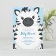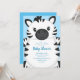 An adorable cartoon zebra baby shower design that is perfect for a safari party! The cute zebra has a blue background that makes it great for a boy on the way!