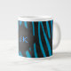 Zebra Black and Blue with Monogram Large Coffee Mug