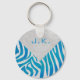 Zebra Blue and White with Monogram Key Ring