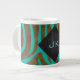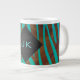Zebra Brown and Teal with Monogram Large Coffee Mug