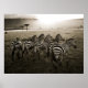 A poster featuring an image of zebras at daybreak in the Masai Mara, Kenya. This poster is fully customisable and available in all sizes and printing materials.